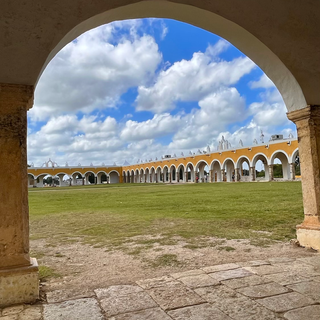 Nous commençons notre visite par la ville jaune d’Izamal. Effectivement, toutes les maisons sont jaunes ( peintes à l’occasion de l’arrivée du pape)